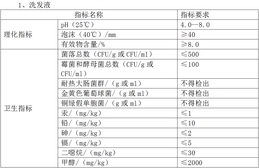 根据相关化妆品产品标准和《化妆品安全技术规范》(2015版),以儿童洗发液、沐浴剂和护肤乳液为例,其主要质量指标如下: